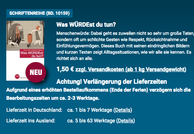 Für die Klassen 3/4 und 5/6 hat www.hanisauland.de (BpB) aus aktuellem Anlass eine Unterrichtseinheit zum Thema „Menschenwürde“ ins Netz gestellt.
