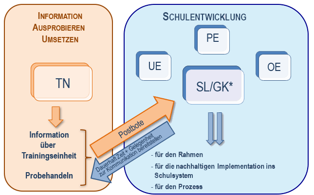 Damit wird sichergestellt, dass gleich am ersten Tag Absprachen zwischen Teilnehmer*innen und Schulleitung hinsichtlich der Weichenstellung einer jeden Schule im Rahmen ihrer schulprogrammatischen Entwicklung getroffen werden.